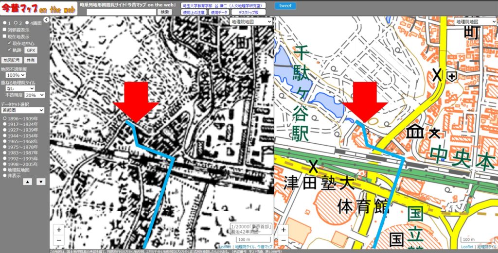 ここで今昔マップon the web(https://ktgis.net/kjmapw/)を見てみると。
