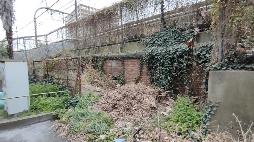 近くで見るとこんな感じ。草に覆われて見えづらいですね。これは穏田川の上に架けた総武線のレンガ橋だそうです。こんな状態ですが川が流れていた動かぬ証拠です。