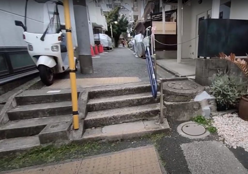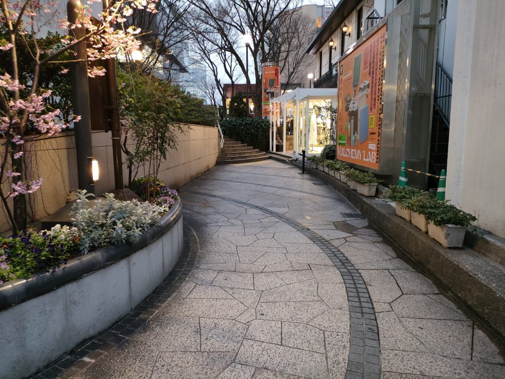 先に進むと4段の小さな階段が有りました。こういう小さな段差はかつて川が流れていた場所に多いです。おそらくこの階段も穏田川に関係があると思われます。